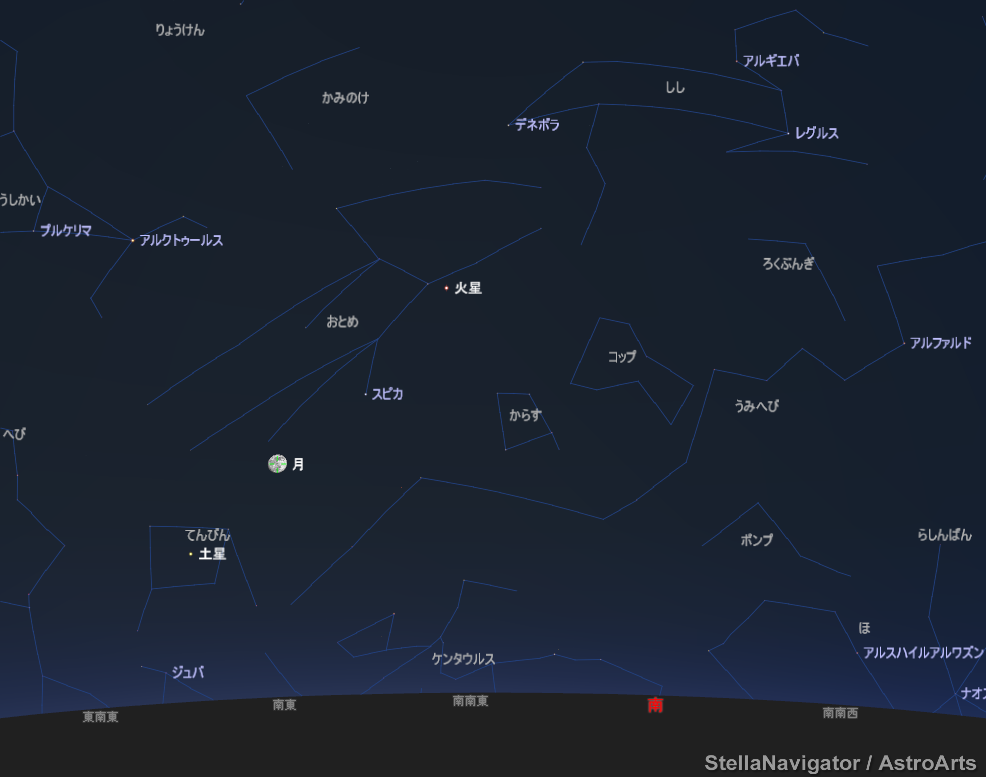 (管理人モード)20時大阪市の星空です。明日14日にお月様が土星に(見かけ上)大接近します。月があるときはスピカなどは見づらいですね。満月は15日です。