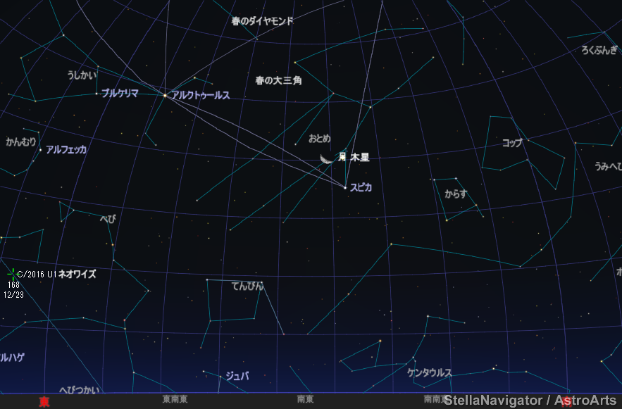 2016/12/23 5:00頃 お月様・木星・スピカ