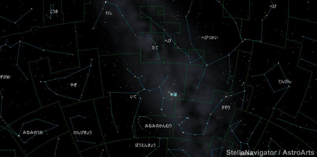 板垣公一さん、10月20.383日(世界時)の観測から、いて座に10.7等の新星を発見