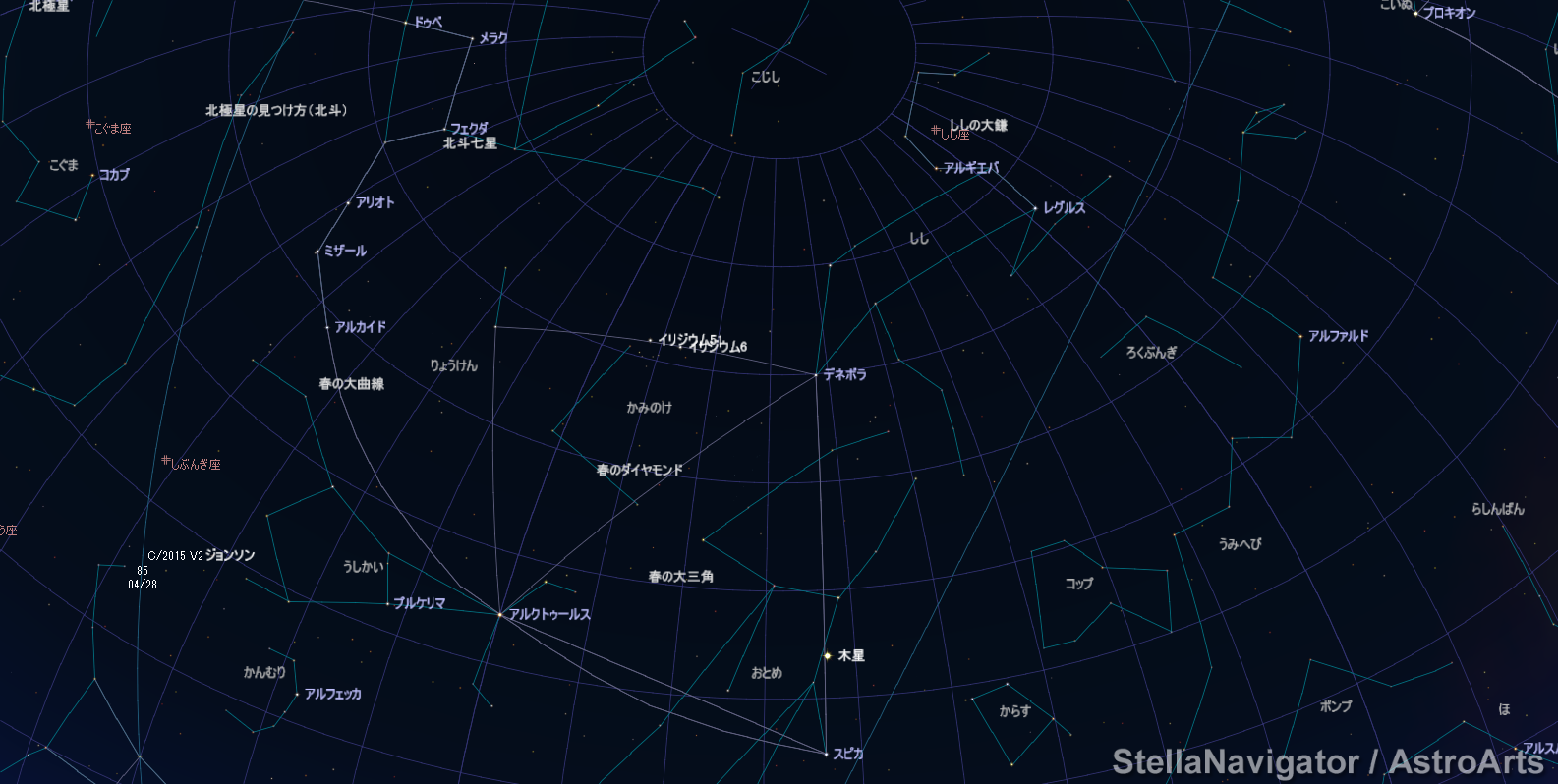 2017/04/28のイリジウムフレア この辺り。雲切れから見えるかどうか。