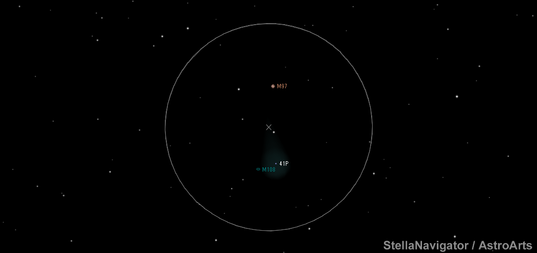 タットル-ジャコビニ-クレサーク彗星がM108銀河とM97ふくろう星雲に接近