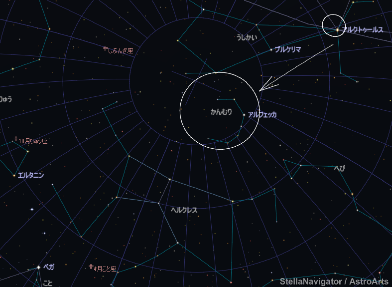 アルクトゥールスから、かんむり座(、・ω・)、
