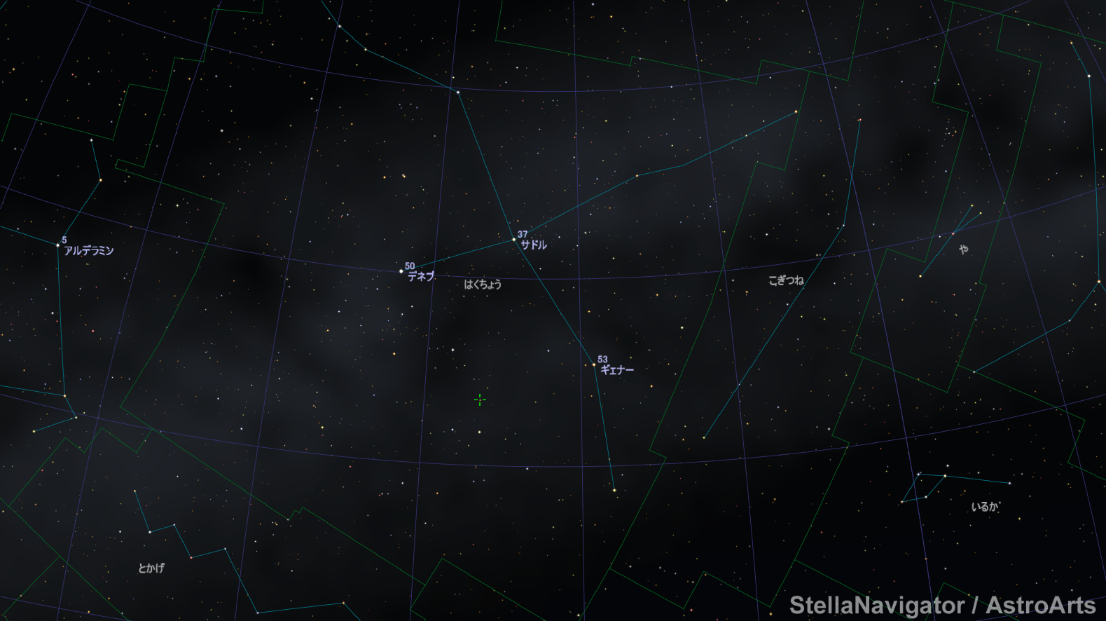 三島由紀夫「美しい星」で仙台在住の宇宙人3人の出身星に近い、はくちょう座61番星の位置。