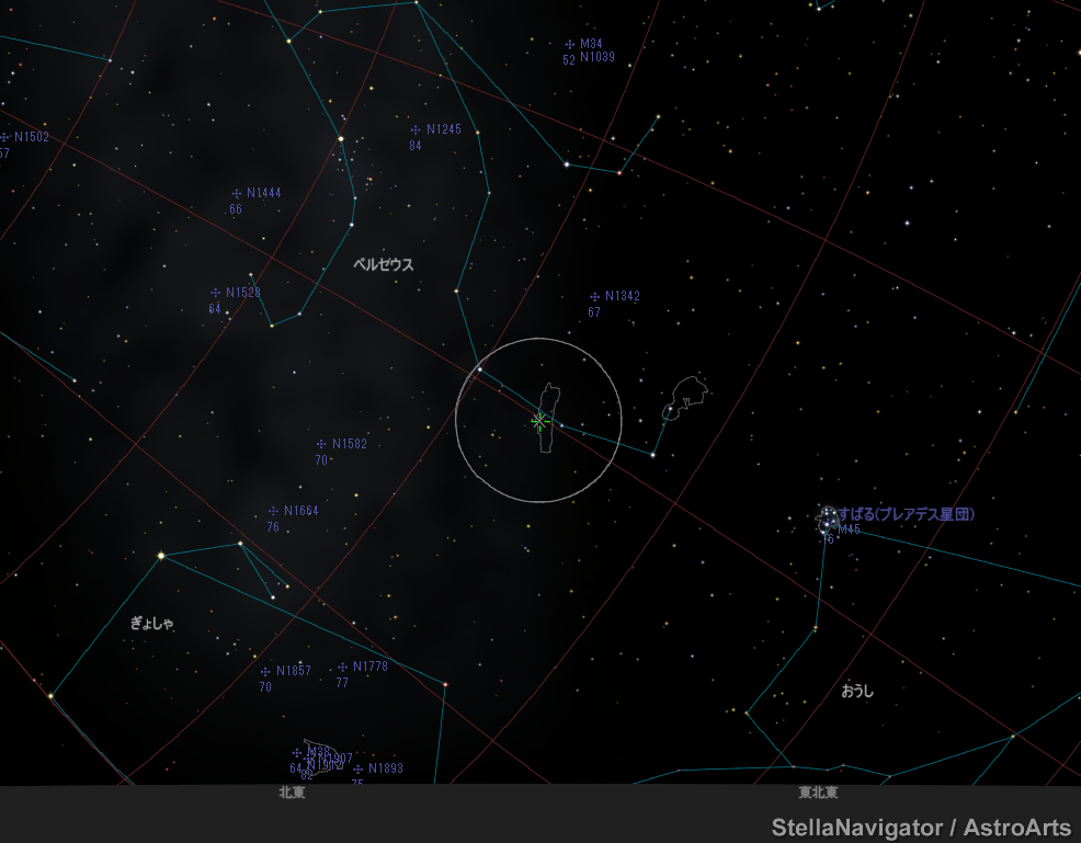 赤経 04h01m48.2s 赤緯 +36゚39'34" (視位置)