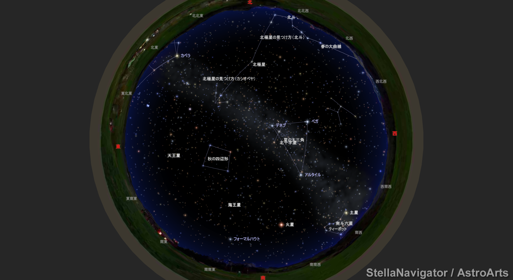 10月10日の観望会の星空。晴れの特異日なのに曇で残念。晴れてればこんなでした(^^;