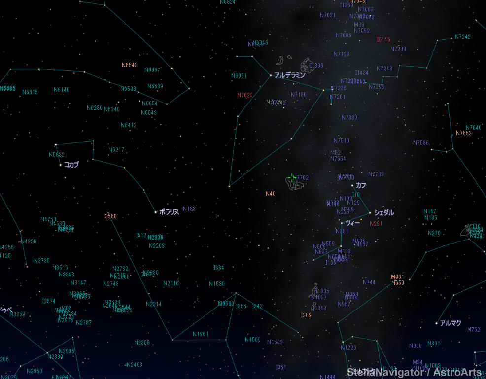 赤経 23h50m01.4s 赤緯 +68゚02'30" (J2000)