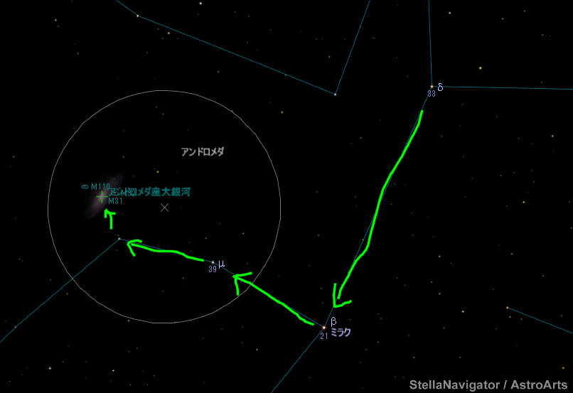 アンドロメダ座δ星からβ→μ→νとたどります。