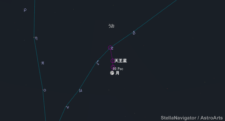 2015年10月26日20:30 天王星・月・うお座ε・80番星