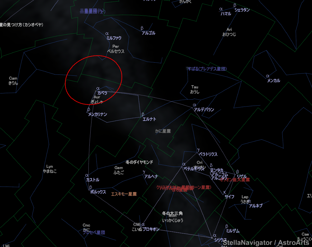 (星空案内:20時)今日は天候よくないけど…。ぎょしゃ座のカペラの付近は古代ギリシャでは「こやぎ座」という別の星座扱いでした。恒星名にも「形跡」があります。