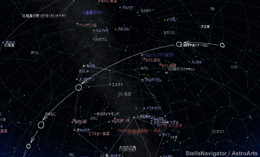 自分用メモ>2017年9月3日 3:48頃~ISS可視パス 約-4等級 すばるの近くを通るパス。晴れますように☆