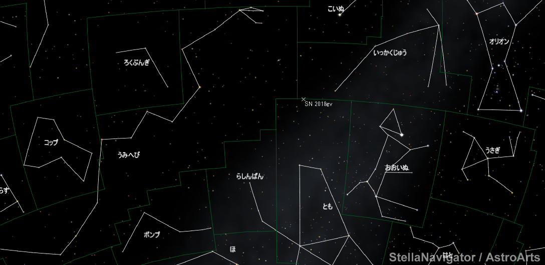SN 2018gv。2018年1月15日 16時21分6秒(世界時)の観測から。16.5等。
