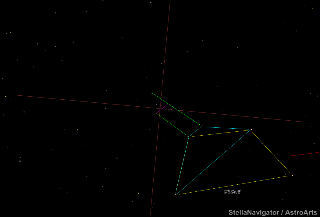はちぶんぎ座の台形(黄色)から、ミニ台形(水色)を見つける