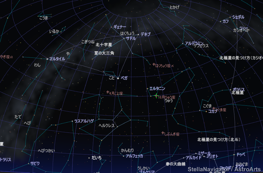 10月りゅう座流星群(ジャコビニ流星群) 射点位置 2016年は10/8(土)21時頃が極大になるそうです。