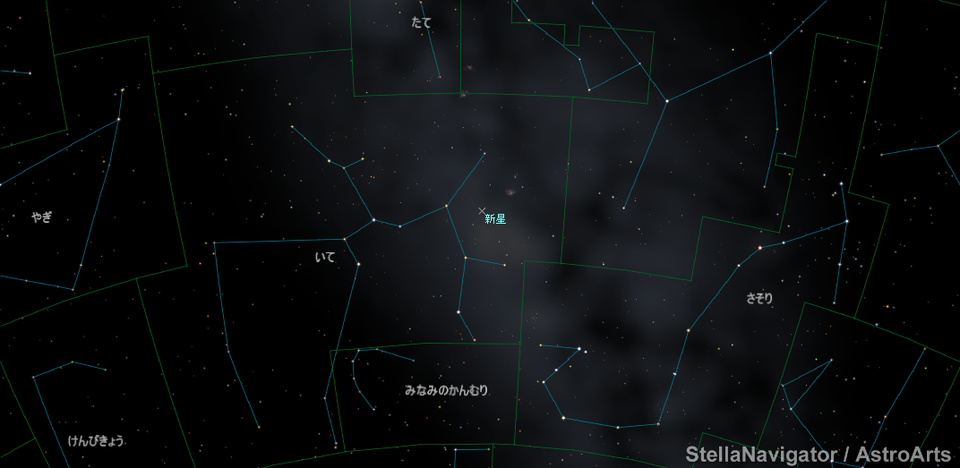 位置:赤経18時14分25.14秒、赤緯-25時54分34.3秒(2000.0年分点)