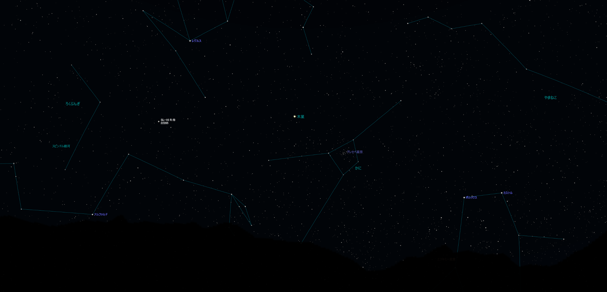 星座線を入れて天文シミュレータで表示させてみました。