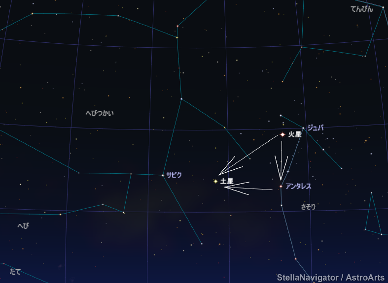 蠍座の近くに、火星と土星(、・ω・)、☆