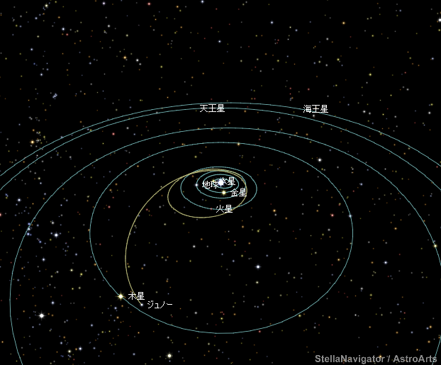 探査機ジュノーの経路をステラナビゲータ10でシミュレーションできます。