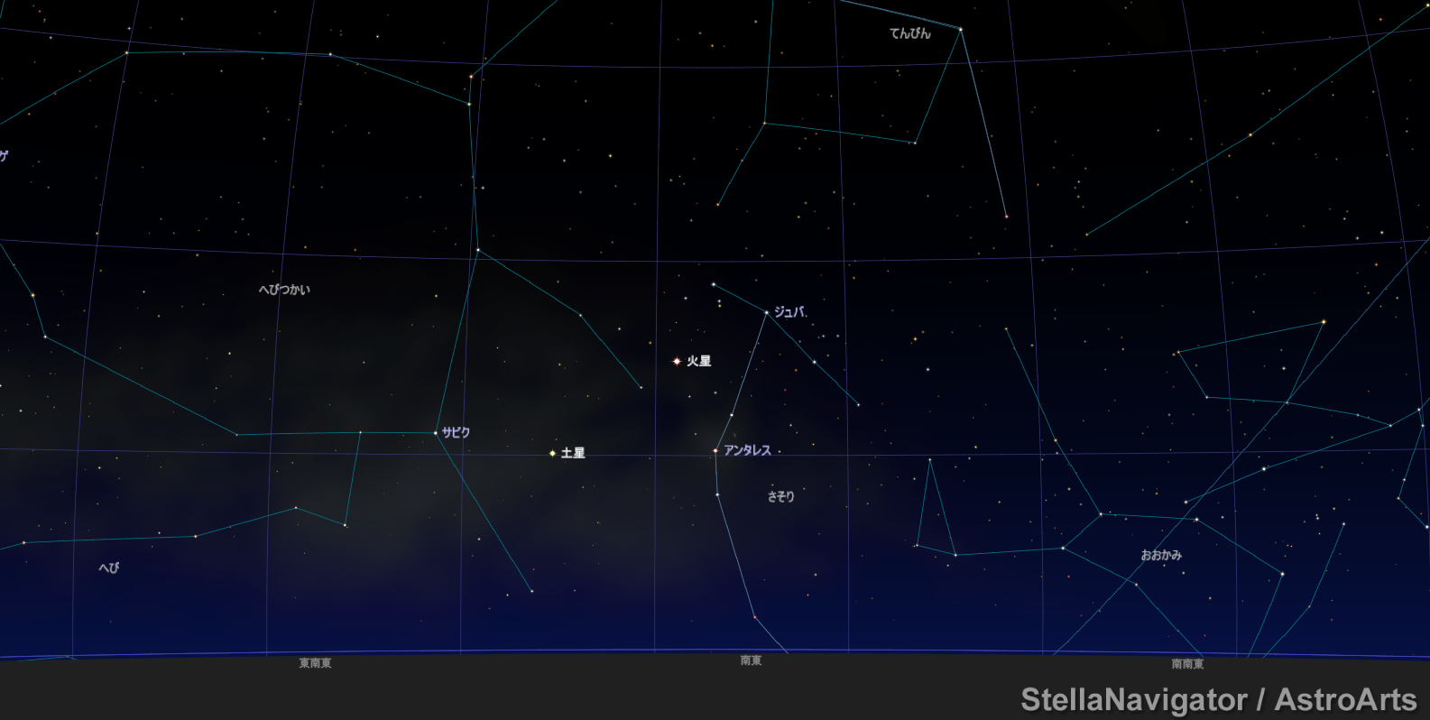 5/1 22:00頃 蠍座と火星 (、・ω・)、