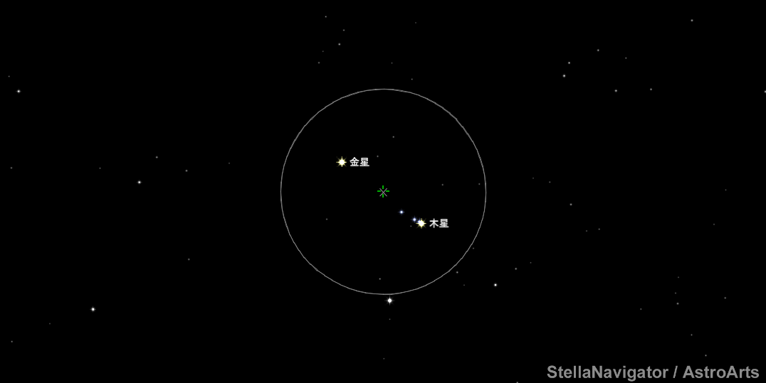 8月28日19:00の空。視野円の範囲は1度。視野円の中央は高度6.4度。