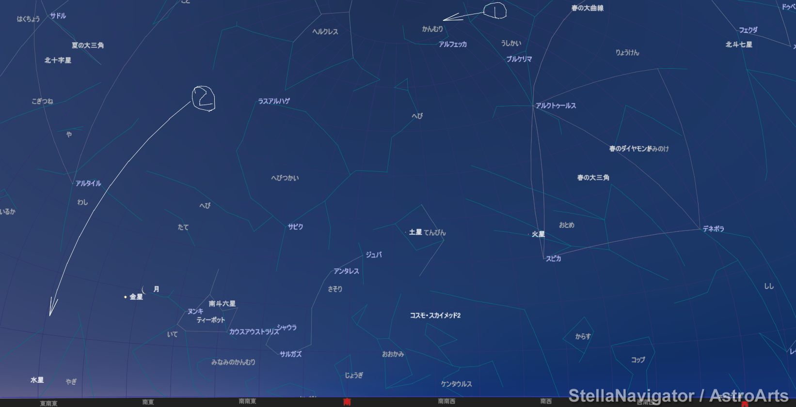 2014/02/26 早朝 ①は4時台 ②は5時台に見た流星の軌跡 (こんな感じだったかな。)