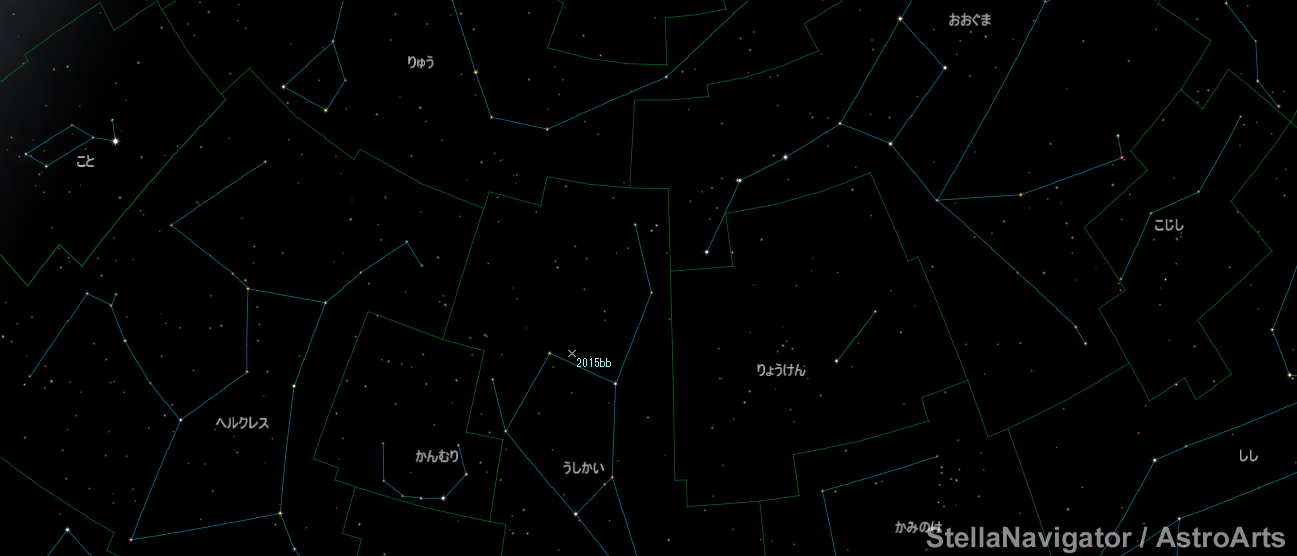 東京都の嶋邦博さん、11月16.8167日(世界時)の観測から、うしかい座のNGC 5772に17.0等の超新星を発見(2015bb)