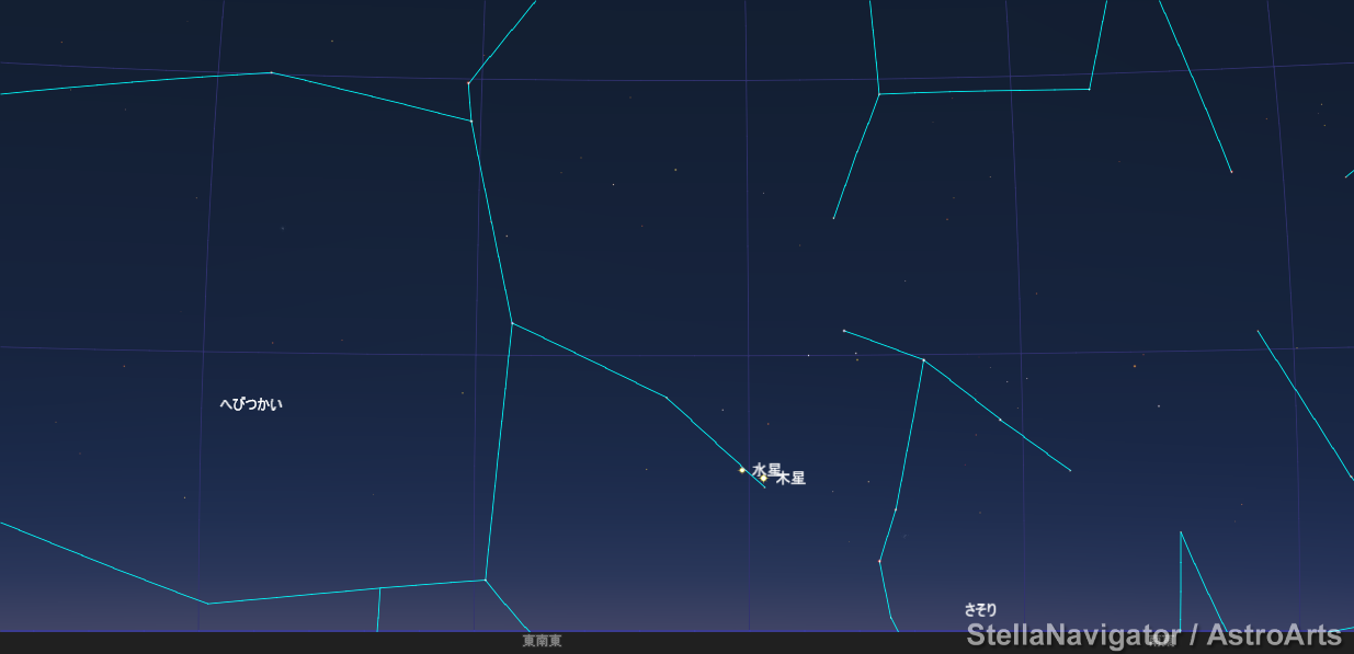 2018年12月22日前後、明け方の超低空で、水星と木星が見かけ上接近