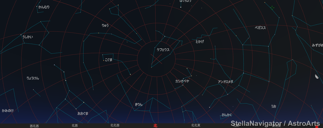3000年後の空はこんな感じですね。中央の×のところが元々北極星があった場所。確かにだいぶズレてる。 #シンデレラの観測会