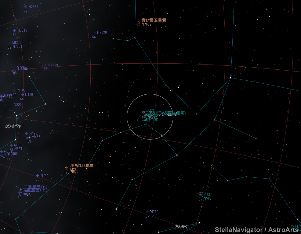 赤経 00h43m38.8s 赤緯 +41゚21'28" (視位置)
