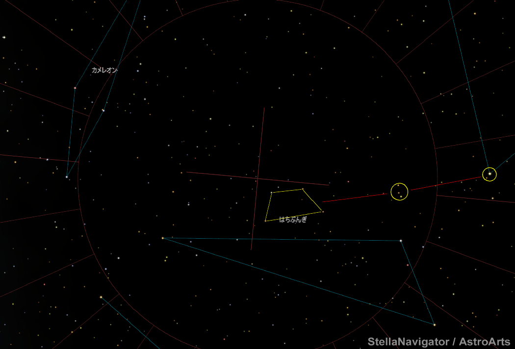 小マゼラン→みずへびβ→三ツ星→はちぶんぎ座台形