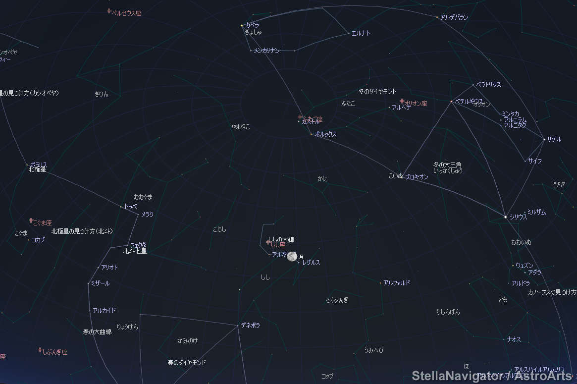 2019/02/19のお月様の位置、獅子がお月様を抱いている様に見えます♪