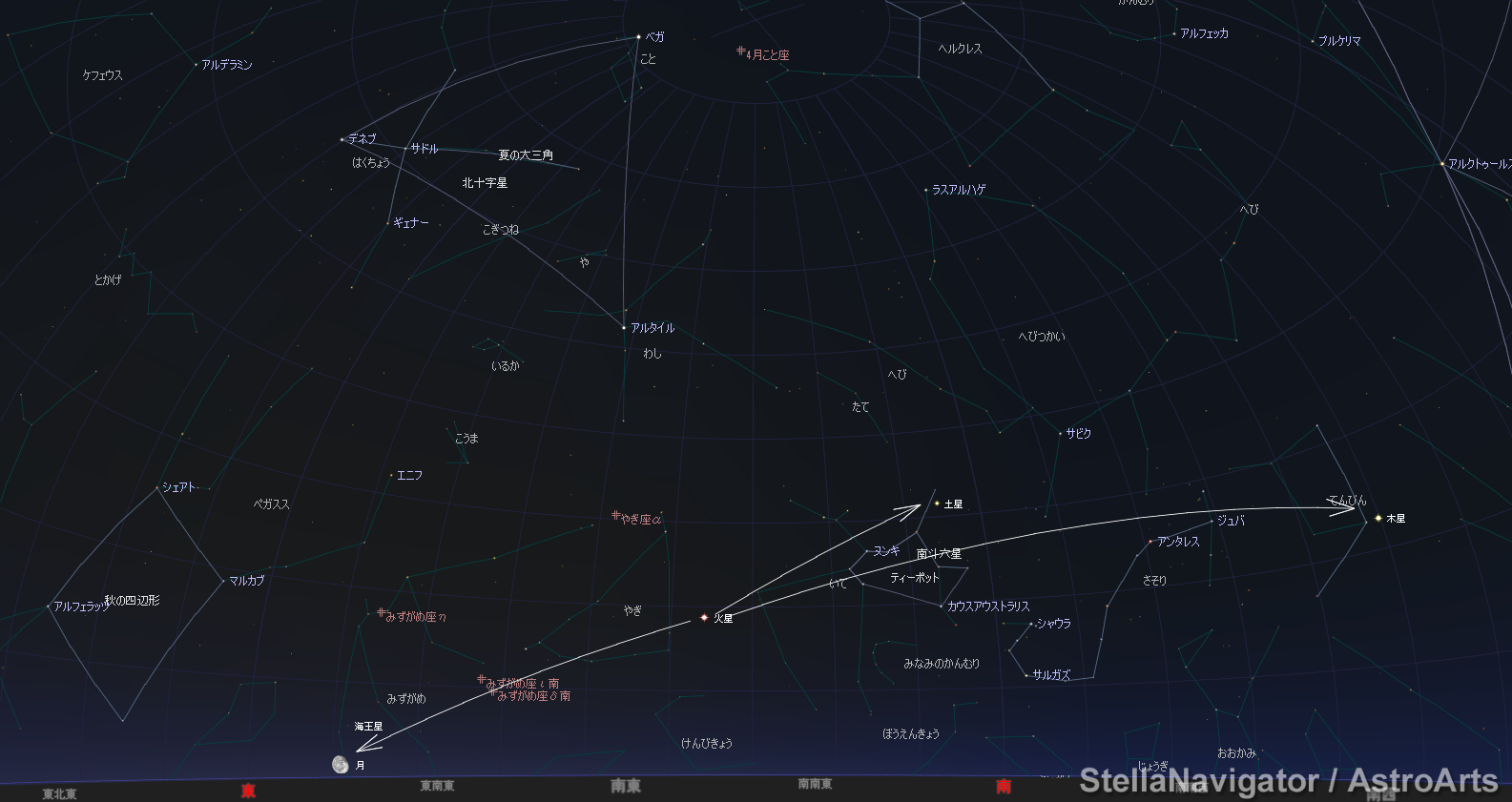 2018/07/31 21時頃 火星から土星、木星の見つけ方。蠍座のアンタレスと火星の明るさの違いにもご注目☆