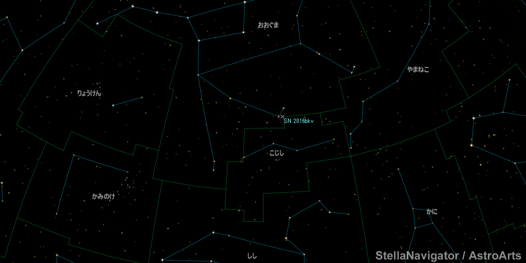 板垣公一さん、3月21日16時52分54秒の観測から、おおぐま座のNGC 3184に17.2等の超新星を発見(SN 2016bkv)。
