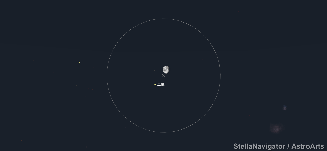 2018年5月5日未明、月と土星が見かけ上大接近(拡大)